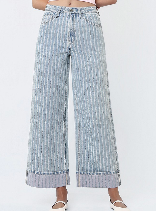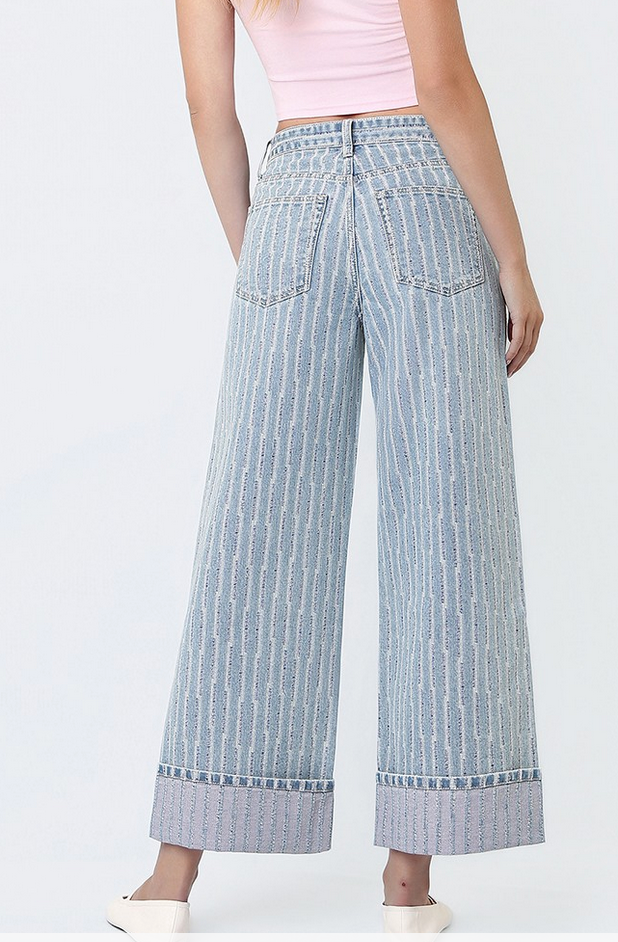 Hey Sun Striped Wide Leg, Cuff Jeans