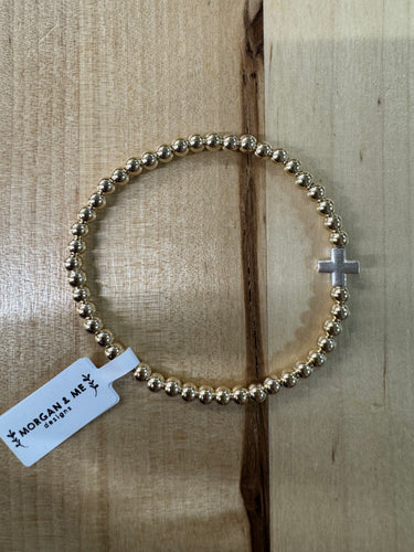 4 MM Gold Filled Bracelet with Sterling Silver Single Cross