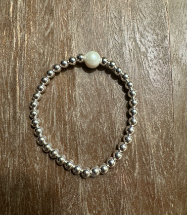 Finish your look with the 5 MM Bracelet with Silver and Pearl. Its balanced mix of metallic tones and classic pearl detail creates a piece that is both timeless and modern. Perfect for stacking or wearing solo, it elevates any outfit with subtle sophistication.