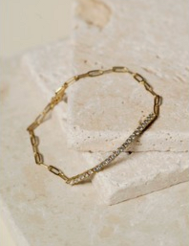 Elevate your jewelry collection with the Elizabeth Pave Tennis Paperclip Chain Bracelet. Its brilliant stones and modern chain design make it a statement piece that transitions seamlessly from day to night, adding elegance and sparkle to every look.