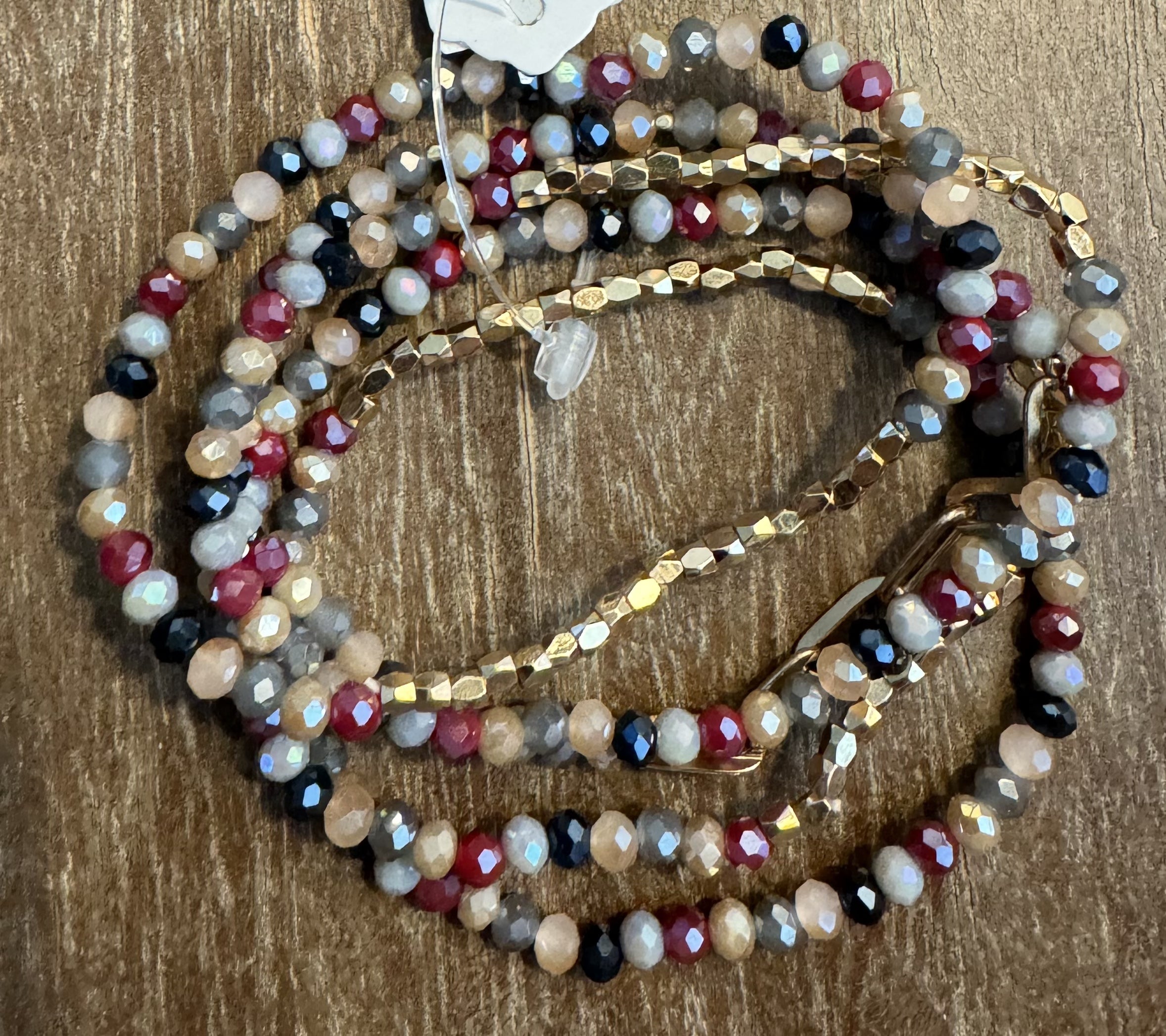 Mix sophistication and fun with the Gold & Glass Bead Stackable Bracelet in navy, plum, grey, and natural hues. Each strand adds a pop of color and texture, making this versatile set easy to wear together or individually for a layered look.