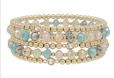 Mulit-Color Glass Beads & Crystal, set of 5 Bracelets