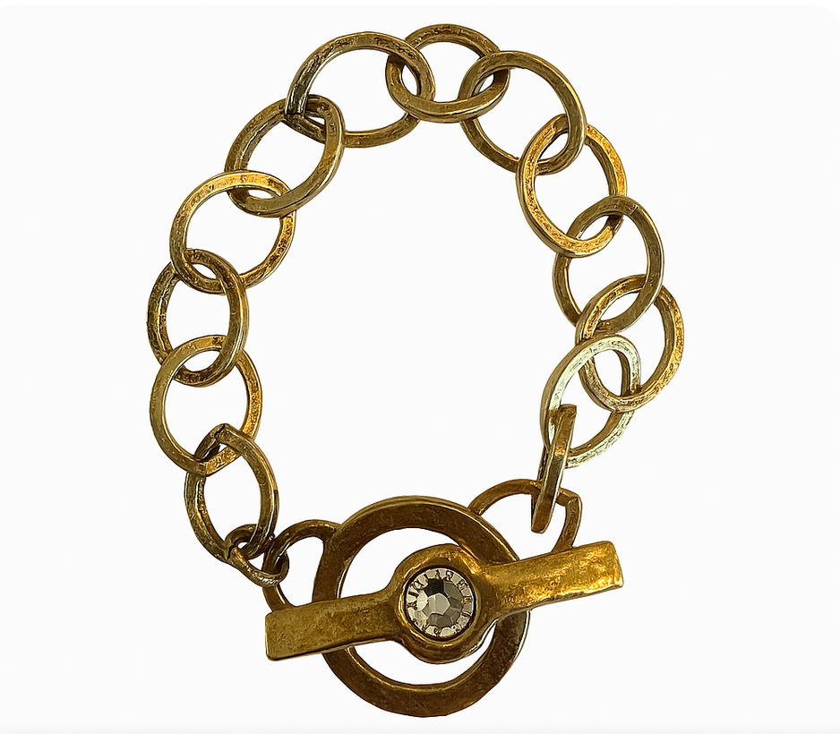 Bring timeless elegance to your wrist with the Radiant Circle Toggle Bracelet. Its sleek toggle clasp and polished finish create a versatile accessory that transitions effortlessly from casual wear to evening sophistication. Pair it with other pieces or let it shine solo for everyday elegance.