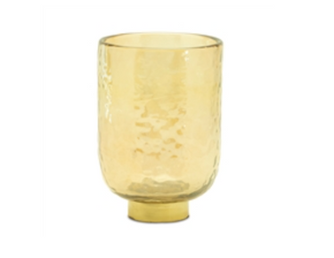 Add golden warmth with the 5.75" Glass Candle Holder. Its shimmering finish reflects candlelight beautifully, creating a cozy glow in any room. Ideal for dining tables, mantels, or intimate gatherings where ambiance matters most.