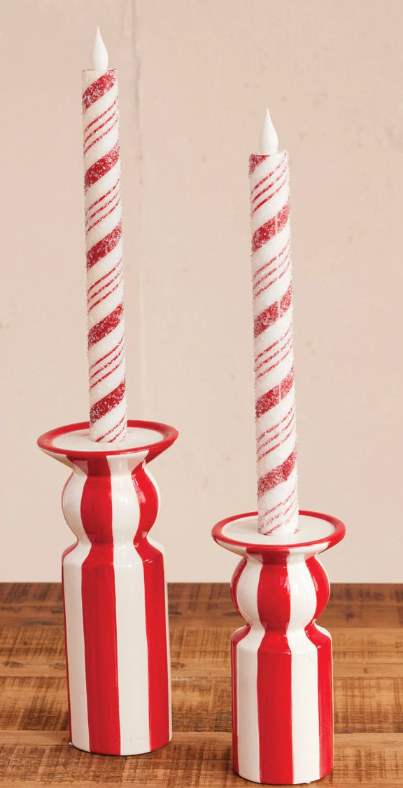 Bring classic charm to your home with the 6" Red & White Candle Holder. Compact and colorful, it’s ideal for smaller tables, shelves, or pairing with other festive pieces to complete your holiday look.
