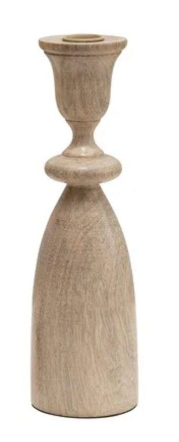 Warm your decor with the Mango Wood Taper Candle Holder, Tall. Its natural design adds height and character to dining tables, mantels, or cozy corners.