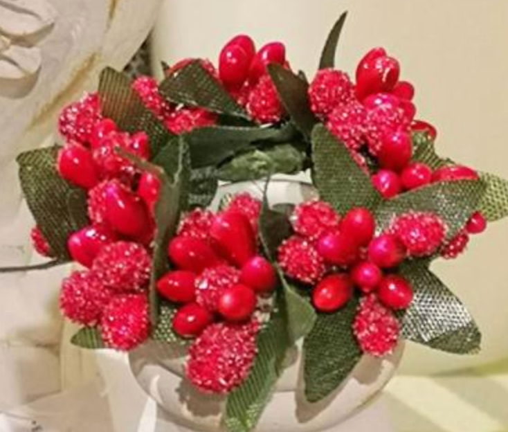 Add festive charm with the Mini Berry Taper Ring in Red. Its vibrant berries and circular design wrap candles with seasonal style, perfect for holiday tables or mantel accents.
