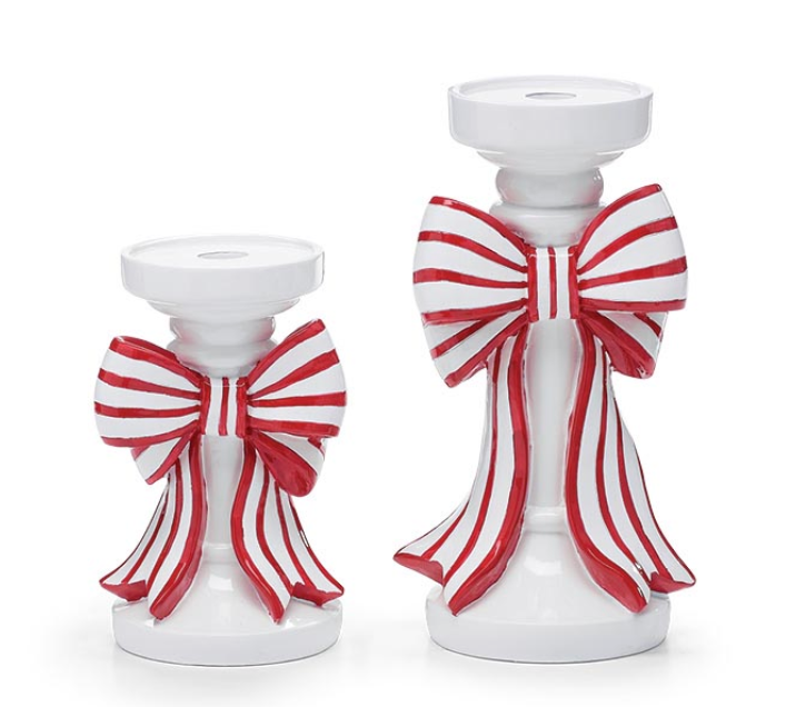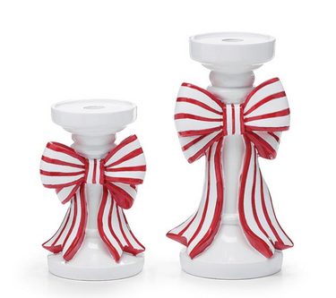 Light up your holiday gatherings with the Red & White Bow Candle Holder, Large. Its cheerful color and bold bow design create a festive focal point on any table.