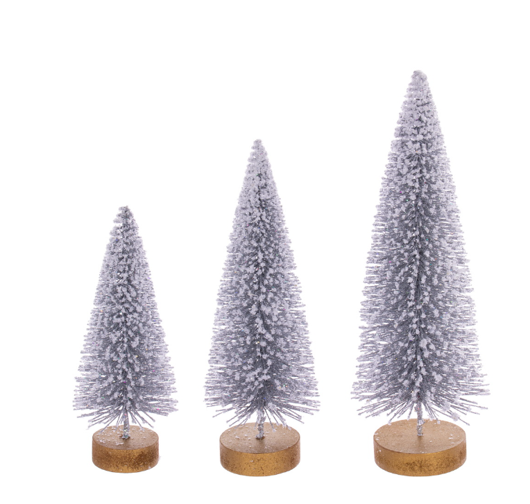 Decorate for the season with Bottle Brush Trees in a set of three sizes. Their textured finish and festive feel bring holiday magic to mantels, tables, or shelves.