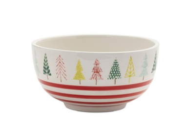 The Striped Bowl with Tree Pattern brings festive elegance to your table. Its charming design is ideal for serving holiday treats or using as a decorative accent. A versatile seasonal piece that delights during Christmas gatherings.
