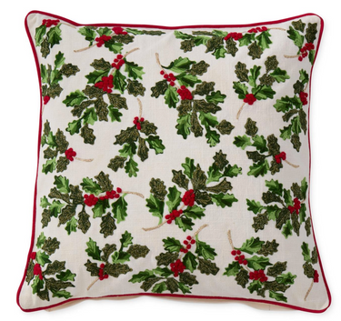 Add gentle charm with the 20" Cream Pillow with Holly Leaves & Berries. Soft and decorative, it pairs comfort with holiday detail.