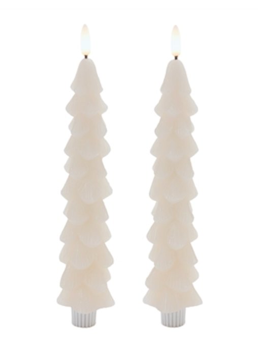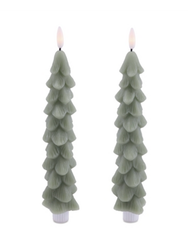 Light up your holidays with this charming set of two taper candles shaped like festive Christmas trees. Each candle features a flickering LED flame that mimics real candlelight without the smoke or mess—perfect for creating cozy holiday ambiance on your mantel, table, or shelf. Safe, flameless, and endlessly reusable, these whimsical tree candles bring festive cheer to any room while keeping your decorating worry-free.