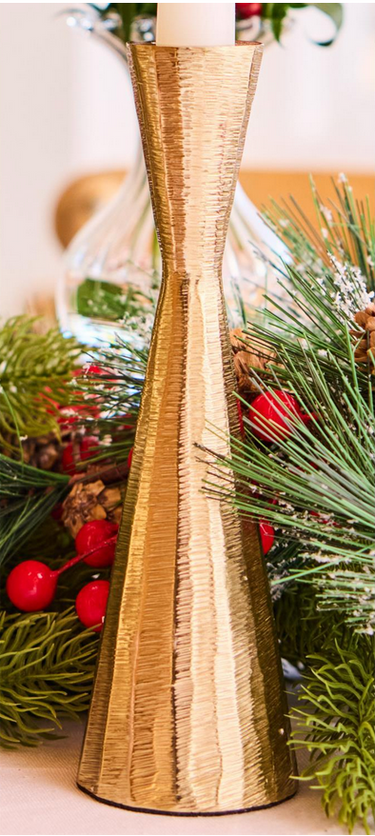Elevate your table setting with the Milan Candle Stick, a refined 10" piece finished in brushed gold. Its understated elegance complements both modern and traditional décor, creating an inviting ambiance for intimate dinners or special occasions. The warm metallic finish catches candlelight beautifully, adding a touch of luxury to any room. Perfect for displaying your favorite taper candles.