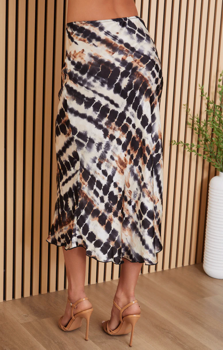 Fluid, feminine, and effortlessly elegant, this Italian silk skirt features a softly draped silhouette with an artful abstract pattern that feels both modern and timeless. Crafted from lightweight silk, it moves beautifully with every step, creating a graceful, flattering flow.