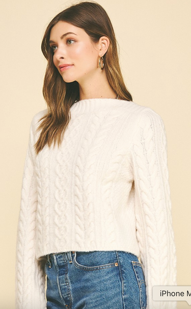 Cream Cable Knit Crop Sweater