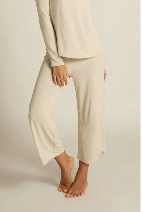 The Wide Leg Capri delivers the comfort that comes from superior fabric construction. Knitted using fine-denier yarn, the bamboo fabric achieves a smooth, luxurious finish that resists pilling through countless washes—a quality difference you'll feel and see. Sustainably sourced and organically grown bamboo, certified to Oeko-Tex® 100 standards, combines ethical sourcing with performance. The versatile silhouette and thoughtfully curated color palette bring effortless elegance to your wardrobe while supporting the restful sleep quality that premium fabrics provide.