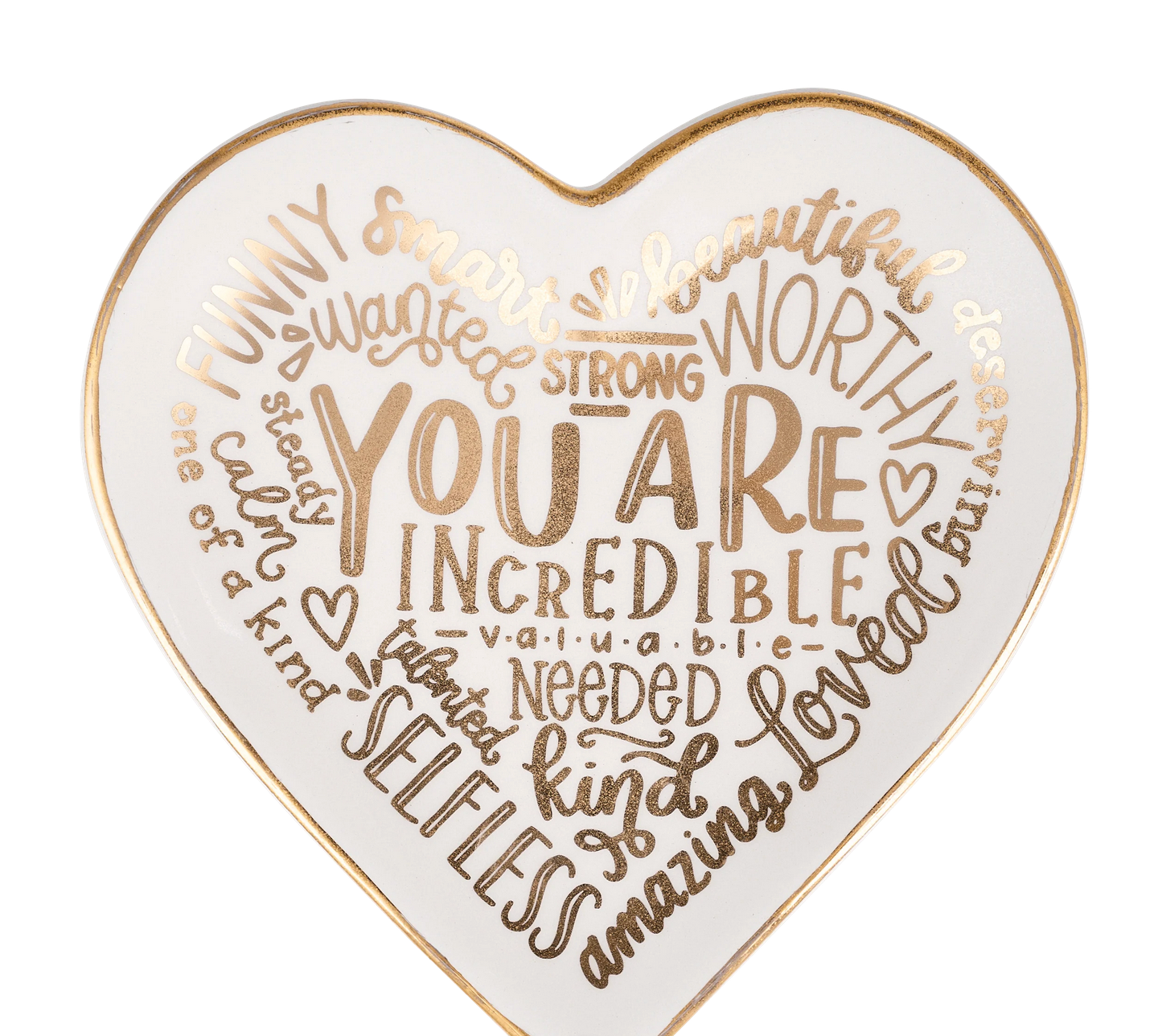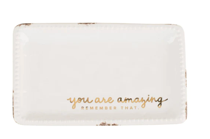 Brighten your day with the Inspirational Trinket Tray. Its uplifting message and chic design make it a thoughtful accent for desks, nightstands, or vanities.