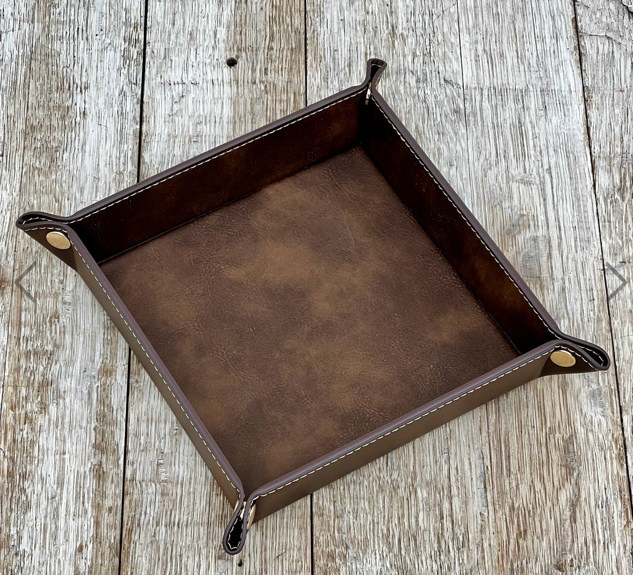 Organize in style with the Leather Valet Tray, complete with engraving. Perfect for storing keys, jewelry, or everyday essentials, it adds both function and a personal touch to any dresser or entryway.