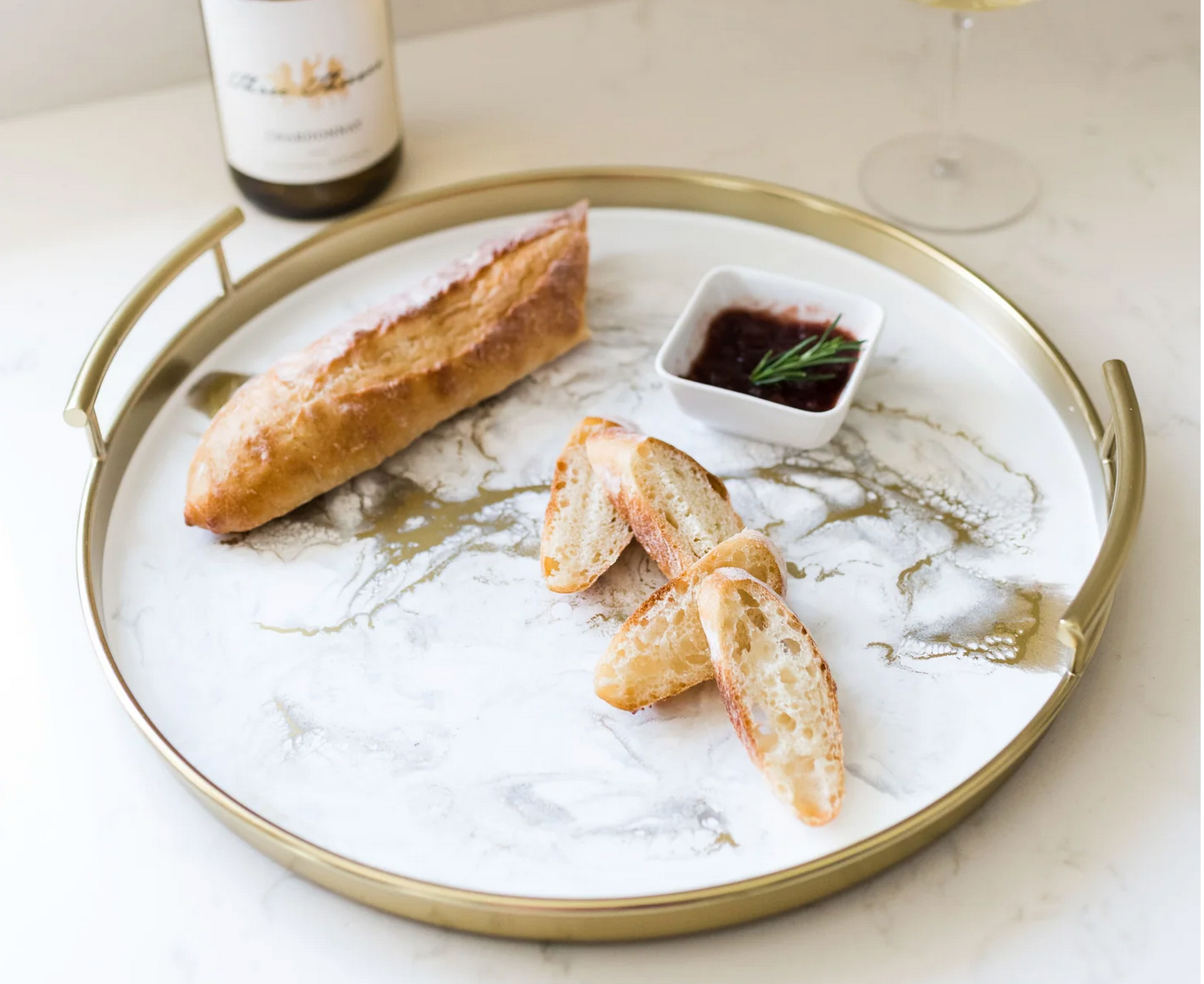 Resin Gold Round Tray, Gold Quartz