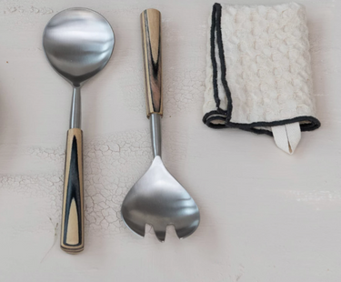 Stainless Steel Salad Servers w/ Mango Wood Handles, Set of 2