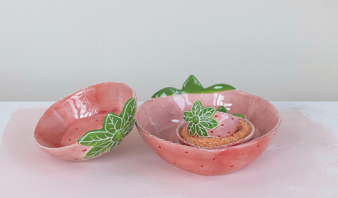 The Strawberry Nesting Bowl in small size is both functional and whimsical. Shaped like a berry, it’s perfect for serving snacks, storing trinkets, or adding playful charm to your table. A cheerful piece that brightens your kitchen.