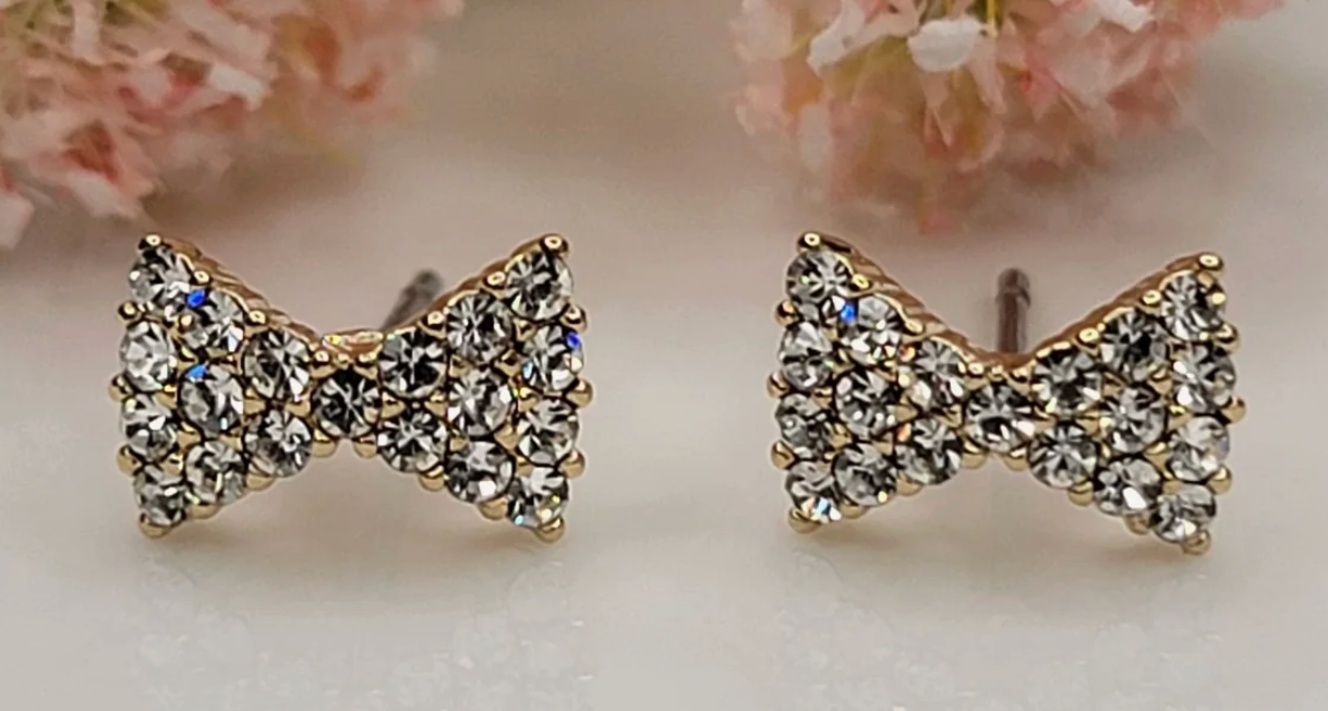 Add sparkle to your look with the Crystal Bow Post Earrings. Their delicate bow shape combined with shimmering detail makes them a feminine, eye-catching accessory.