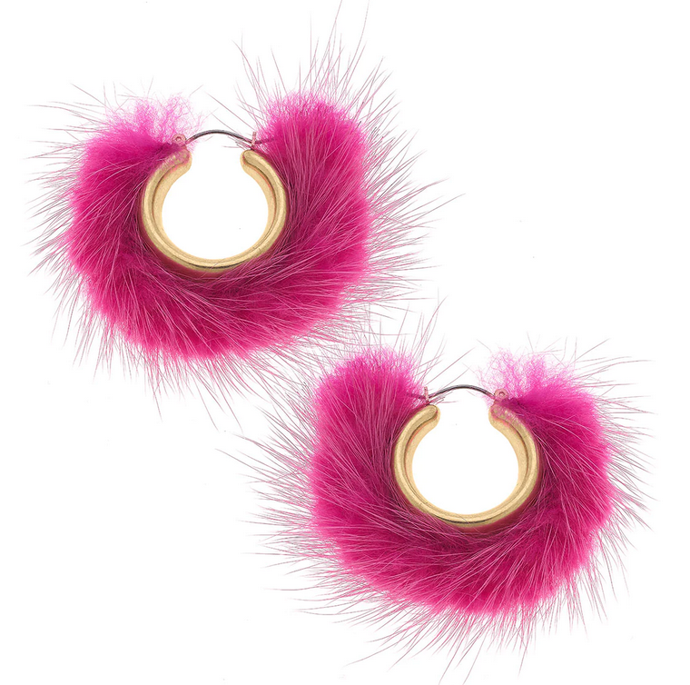 Step into glamor with the Glenda Faux Mink Hoop Earrings. Soft faux mink detail adds playful texture, while the hoop design keeps them chic and stylish. These earrings make a bold statement, perfect for adding flair to nights out or fashionable daytime looks.