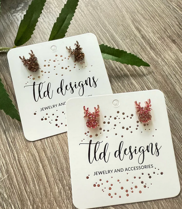 Glitter Reindeer Stud Earrings