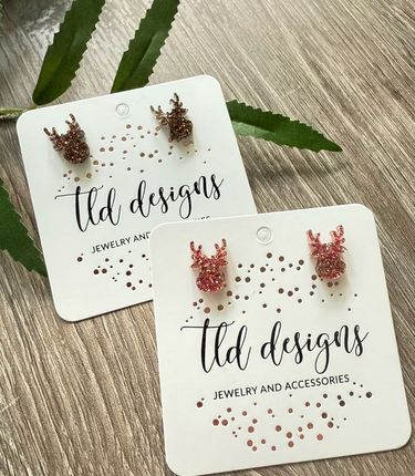 Add sparkle to the season with Glitter Reindeer Stud Earrings. Their playful design and shimmering detail make them festive accents for holiday parties or everyday wear. A whimsical way to celebrate in style.