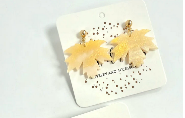 Accessorize with Golden Marble Foliage Earrings. Their leaf-inspired design and shimmering accents bring a natural yet glamorous look.
