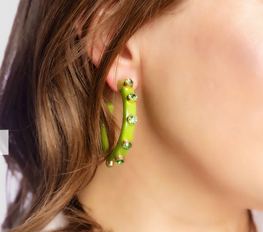 Make a statement with the Renee Resin and Rhinestones Hoop Earrings. Bold and sparkling, they bring glamor to any outfit.
