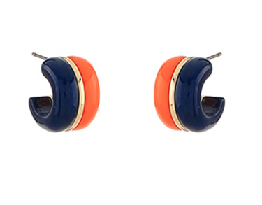 Celebrate school spirit in style with the Side By Side Navy and Orange Hoop Earring. Bold colors and lightweight design make these hoops a statement accessory for any outfit.