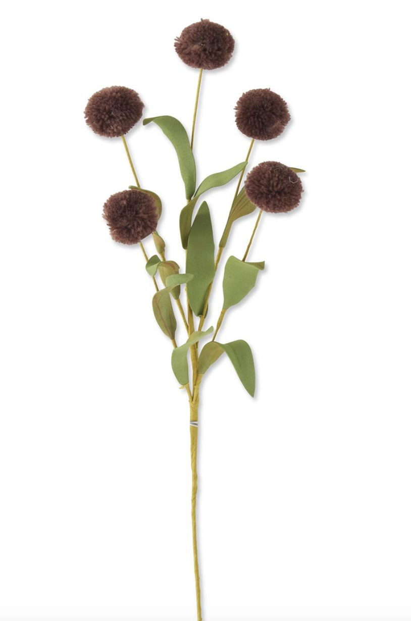 Bring seasonal texture with the 13" Brown Eva Leaf Pom Pom Pick. A perfect accent for arrangements or holiday decorating.