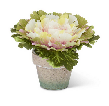 Add charm with the Pink Potted Cabbage. At six inches, it’s a playful and colorful accent for seasonal arrangements or tabletops. Its realistic look makes it a delightful touch of nature indoors.