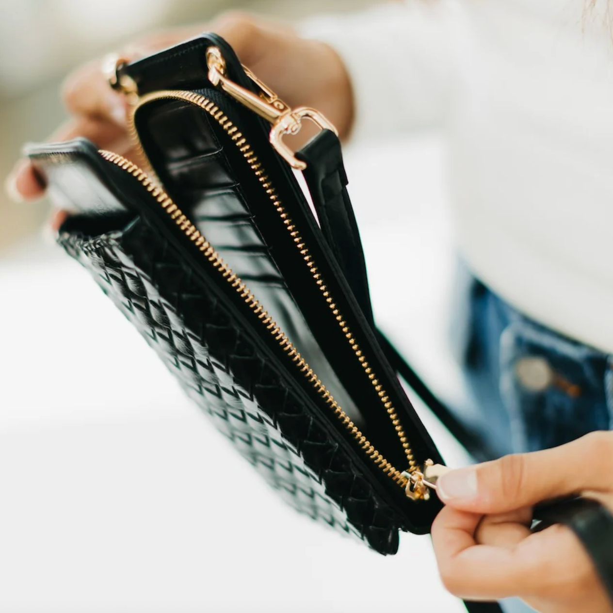 Carry your essentials in style with this charming woven crossbody phone wallet. Perfect for hands-free adventures, it keeps your phone, cards, and cash organized in one compact companion. The natural woven texture adds a touch of boho flair to any outfit, while the adjustable strap ensures a comfortable fit. Whether you're running errands or heading out for the day, this double-duty bag does it all without the bulk. Simple, functional, and undeniably cute.