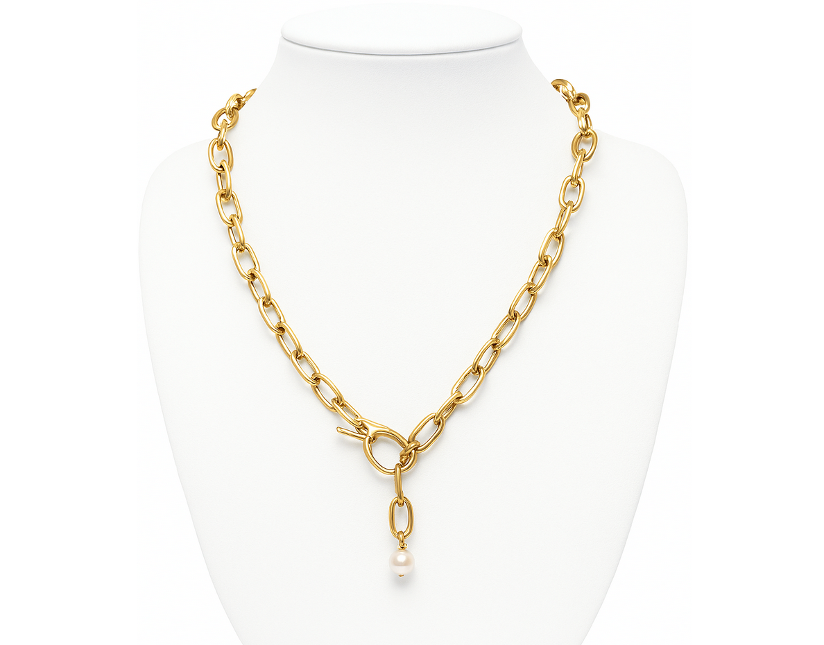 Timeless elegance meets modern charm with the Classic Charm Chain Necklace with Pearl. A lustrous pearl sits beautifully on a sleek chain, creating a piece that transitions effortlessly from casual wear to evening outings. Whether gifted to someone special or styled daily, this necklace celebrates grace and versatility in every detail.