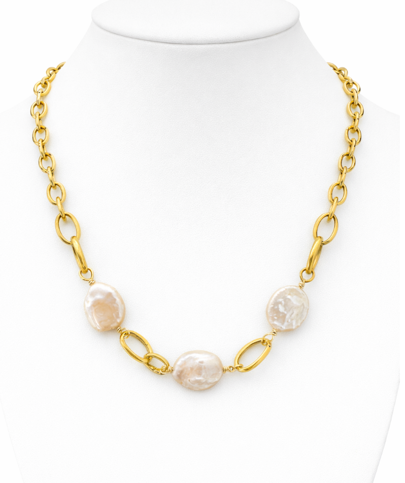 Elevate your everyday elegance with this handcrafted gold link necklace, featuring lustrous pearls that capture the essence of coastal sophistication. Each piece is meticulously assembled by hand, ensuring unique character and refined quality. The delicate interplay between warm gold tones and luminous pearls creates a timeless accessory that transitions seamlessly from day to evening wear. Perfect for those who appreciate artisanal craftsmanship and understated luxury.