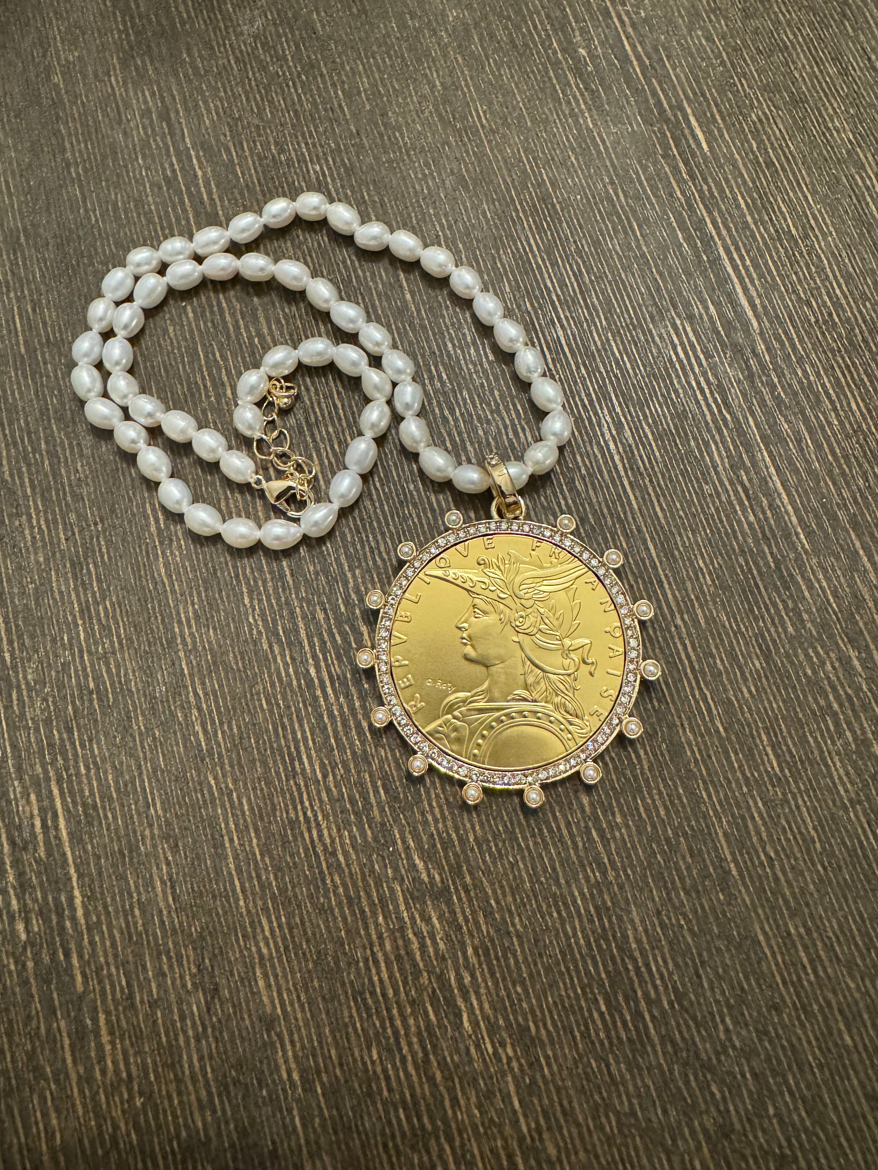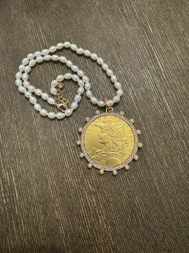 Extra Large Coin Medallion with Pearls & Rhinestones