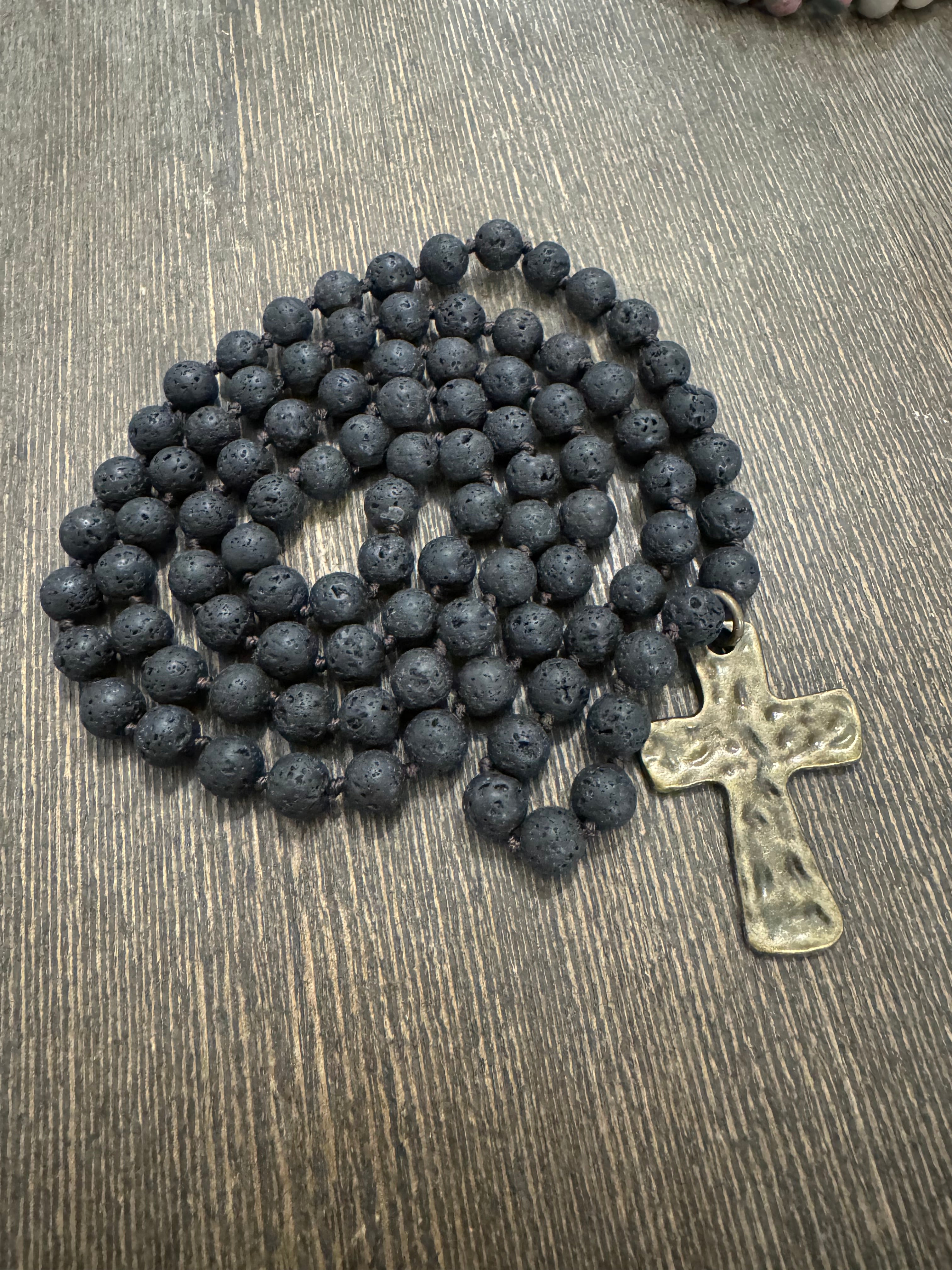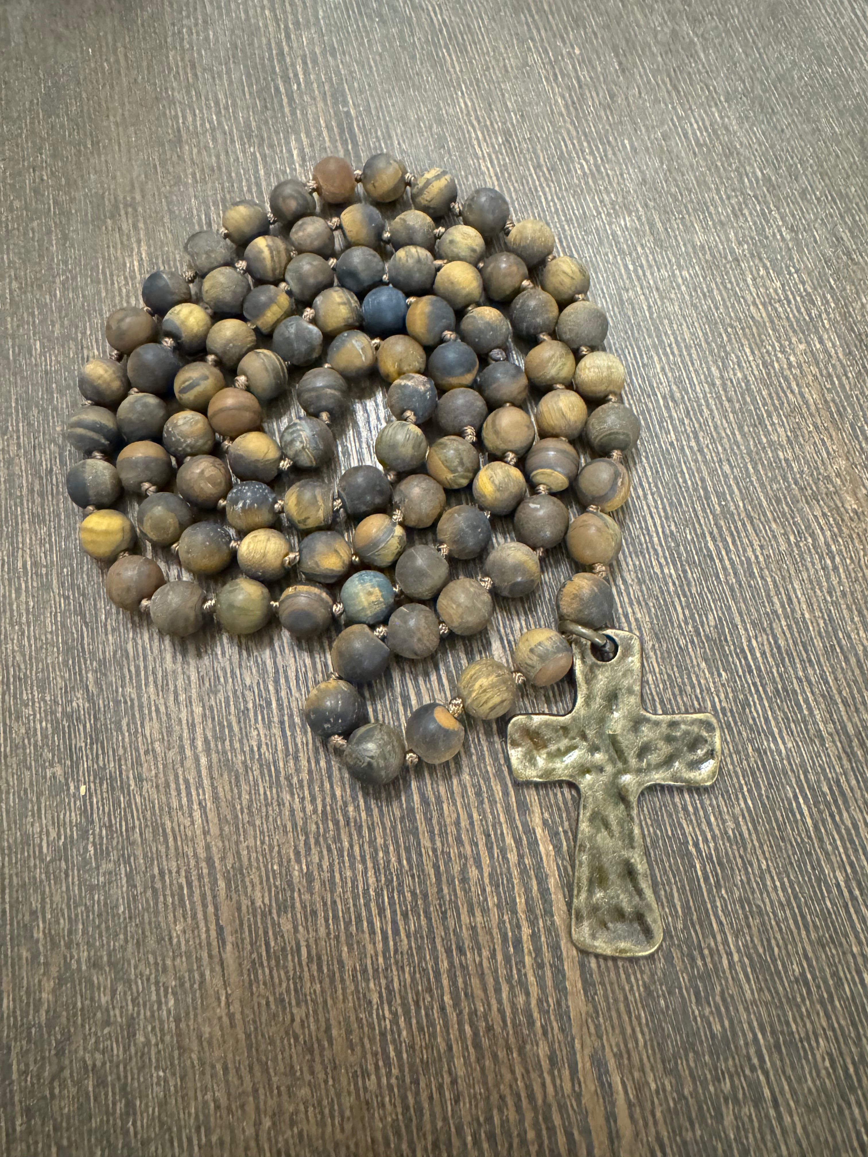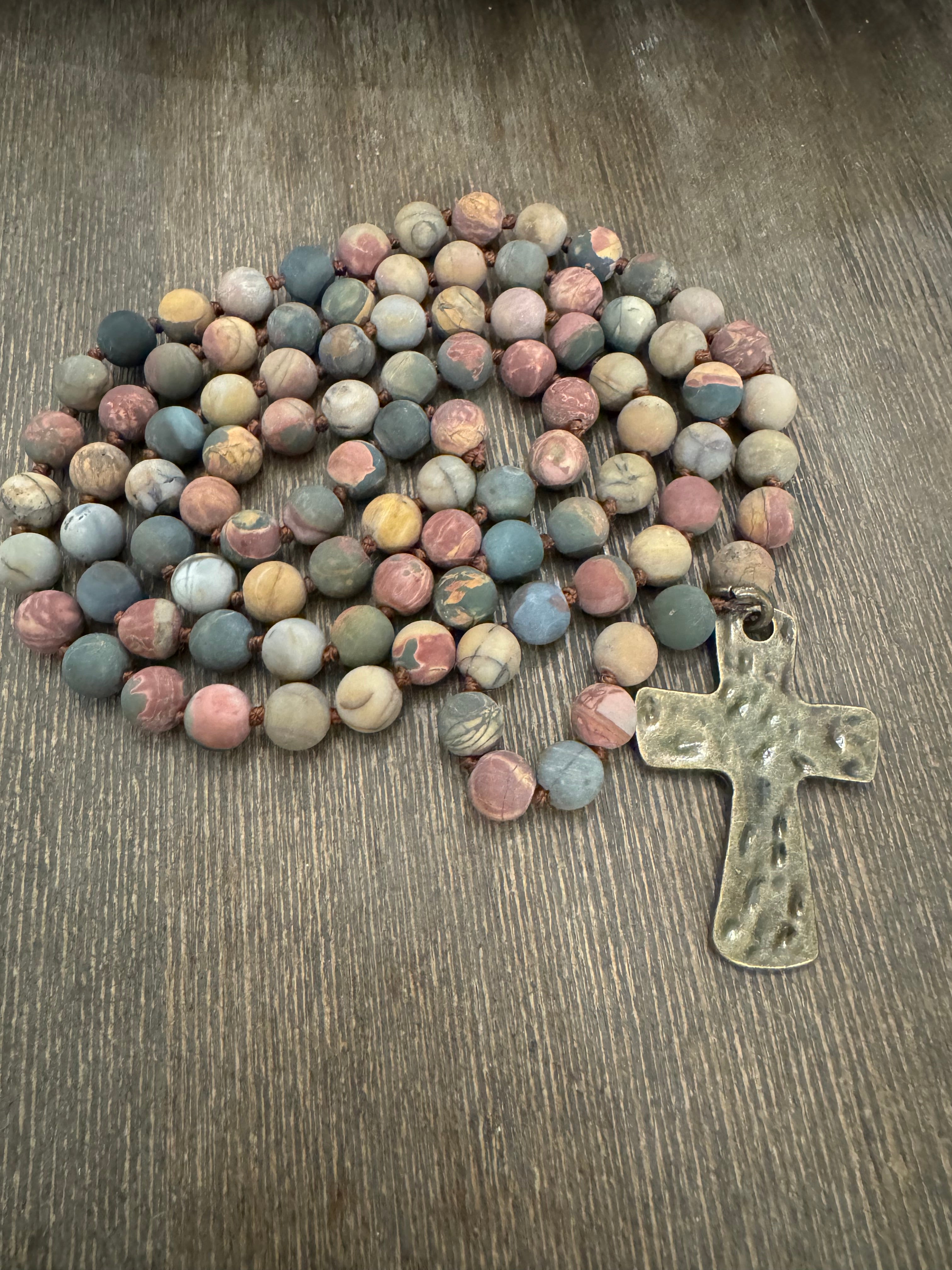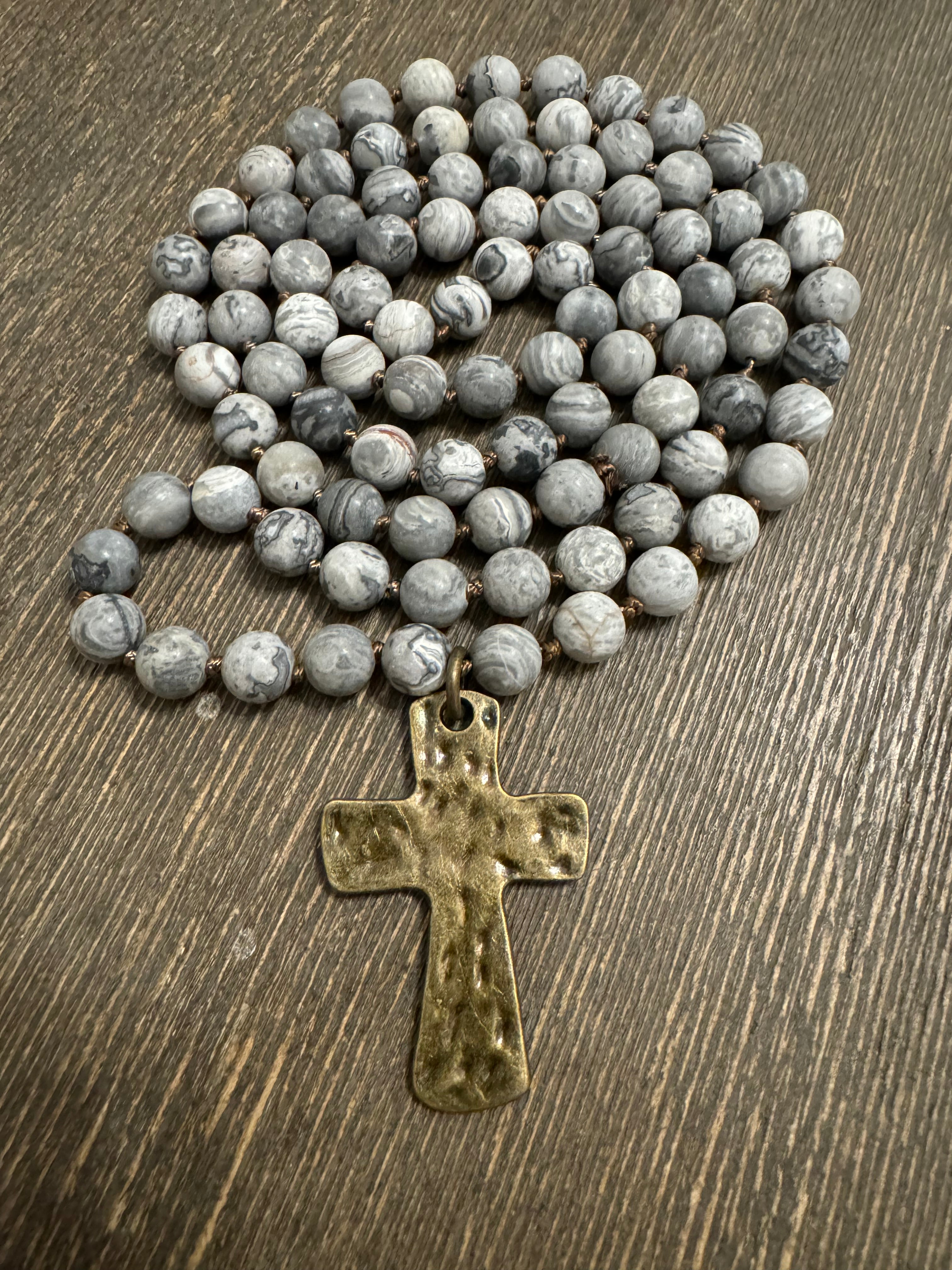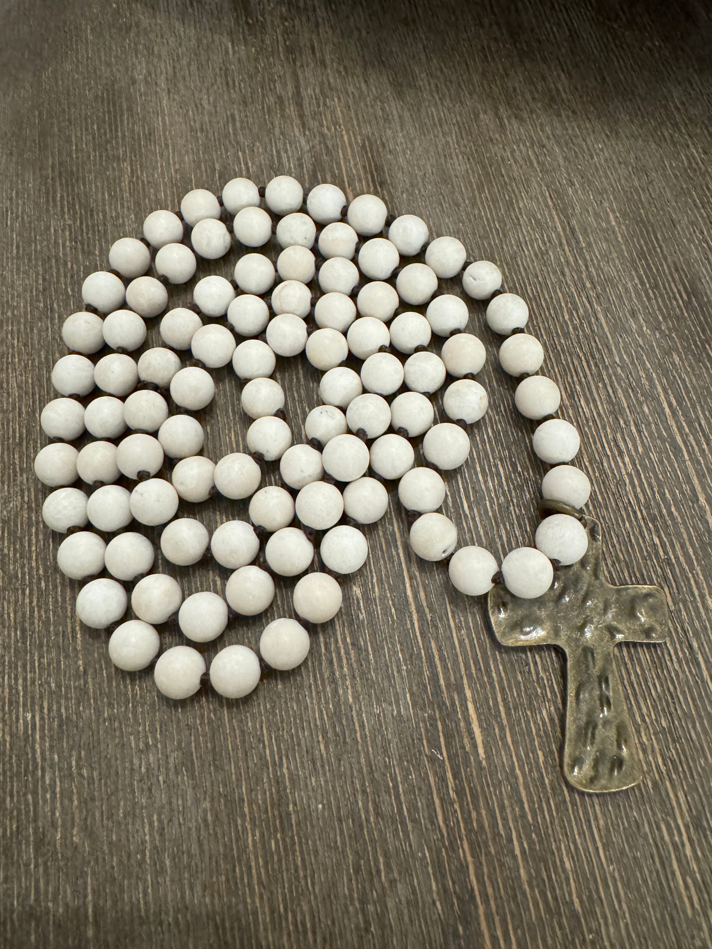 Hand Knotted Beaded Necklace with Cross