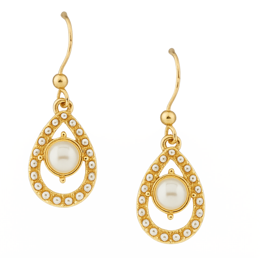 Keep your look refined with the Pearl and Gold Teardrop Earrings. Their classic combination of pearls and gold makes them an elegant choice for special occasions or sophisticated everyday wear.