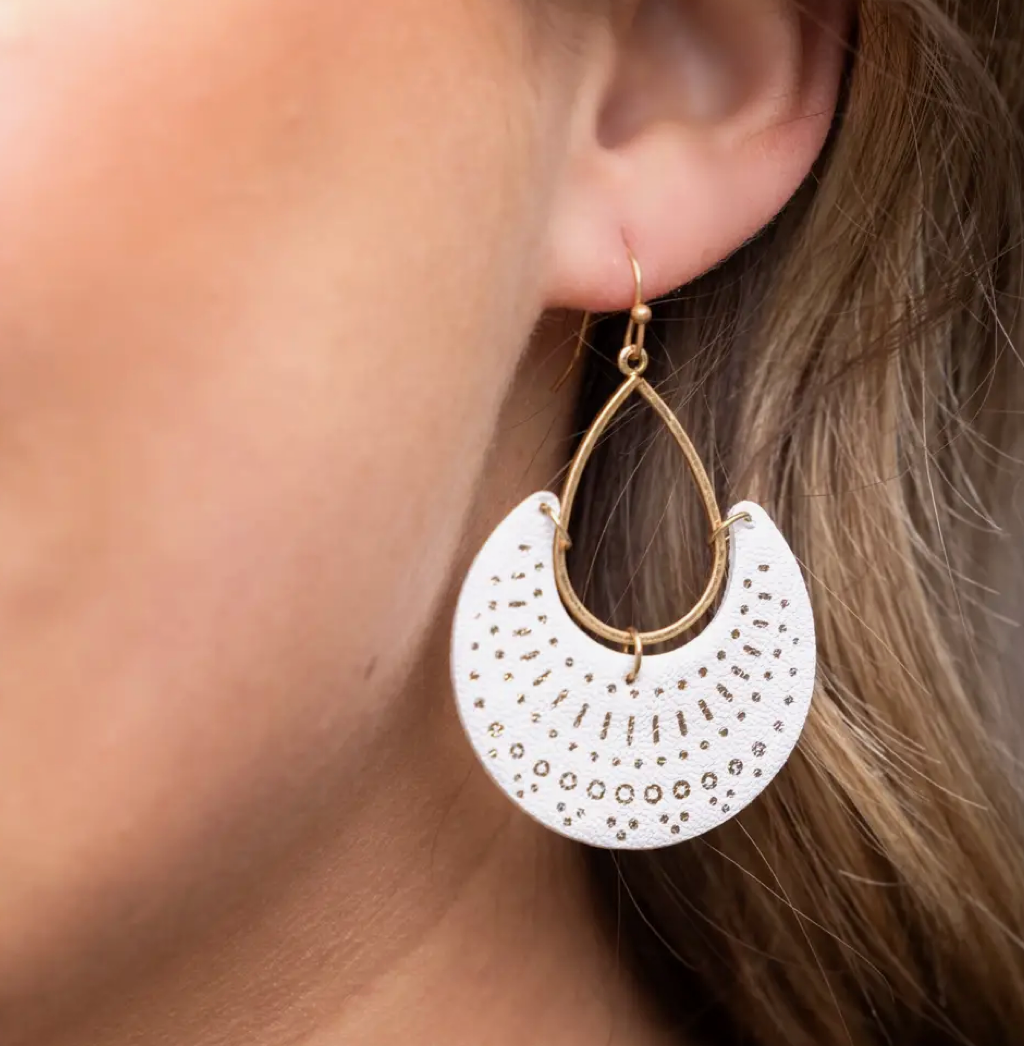 Accessorize with confidence using the White Faux Leather Dangle Earrings. Their clean design and lightweight feel make them an easy choice for elevating casual or dressy looks. A versatile addition to your jewelry collection.