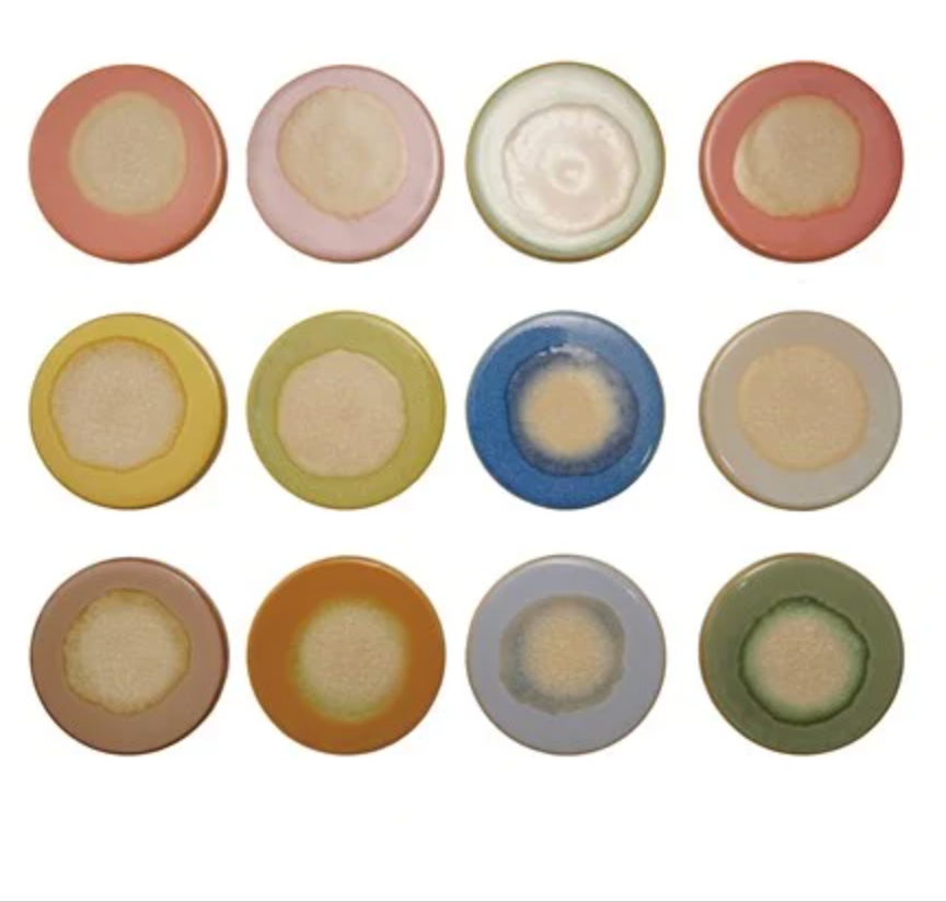 Protect surfaces in style with the Assorted Reactive Glaze Stoneware Coasters. Each piece features unique glaze patterns for a one-of-a-kind look. Functional and decorative, they’re perfect for everyday use or entertaining guests.