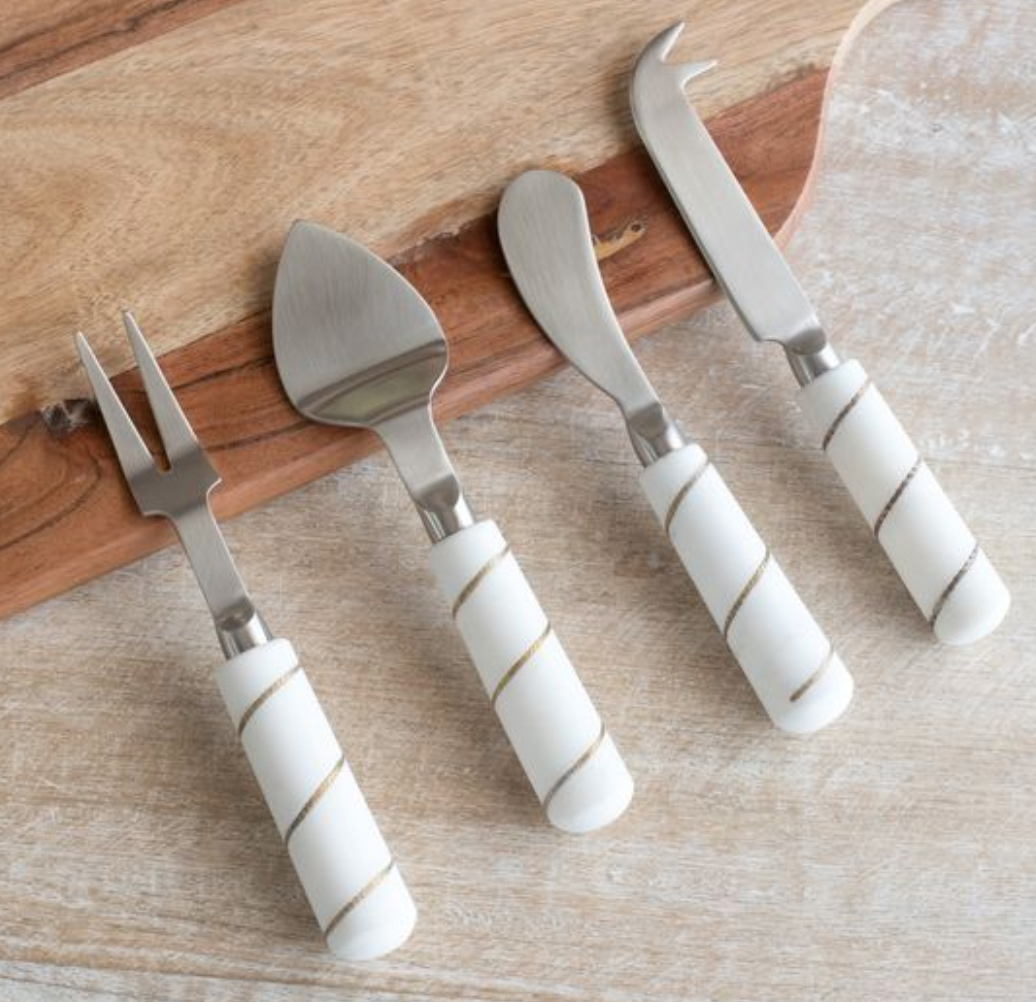 Serve in style with the Marble and Gold Inlay Four-Piece Charcuterie Set. Each knife is designed for functionality while the marble and gold accents add timeless elegance. Perfect for hosting wine nights, celebrations, or casual grazing boards, this set combines sophistication with everyday use.