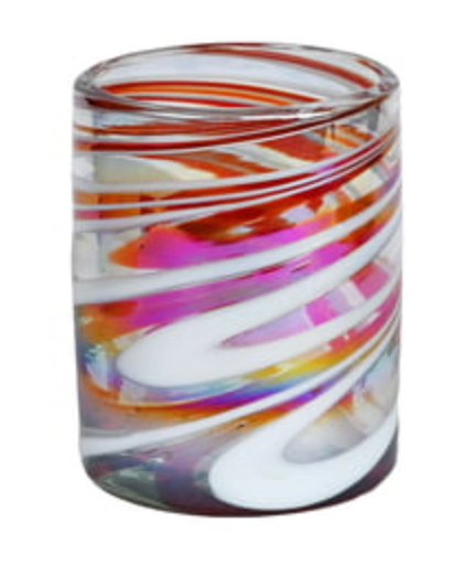 Add playful elegance to your barware with the Red Swirl Double Old Fashioned set of 2. Their bold swirl patterns make each glass a statement piece, perfect for entertaining or enjoying your favorite drinks in style.
