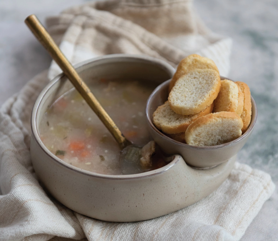 Stoneware Cracker & Soup Bowl, Reactive Glaze