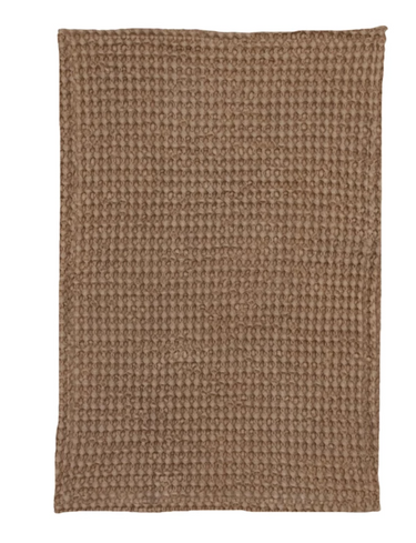 Stonewashed Cotton Waffle Weave Tea Towel, Camel Color