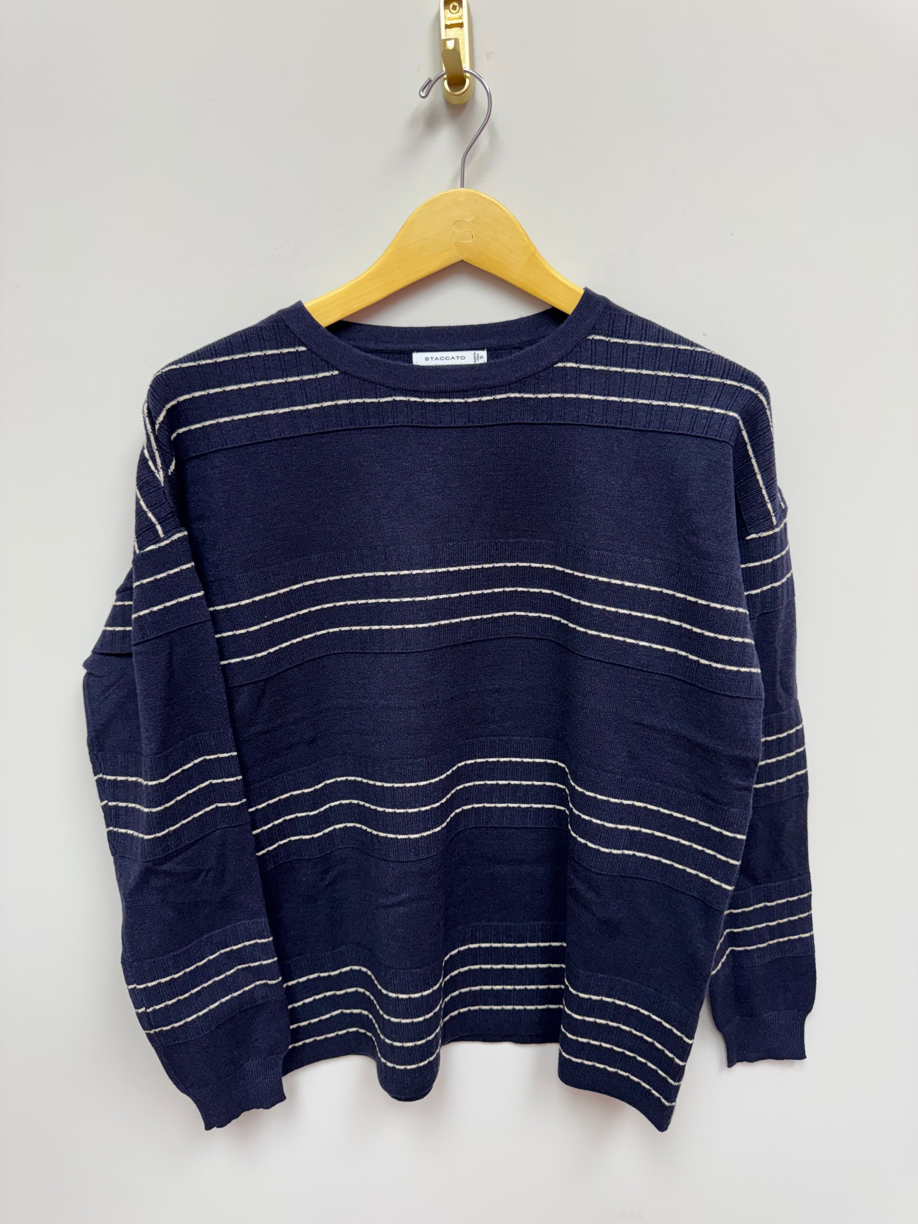 Navy Stitch Striped Long Sleeve Crew Sweater