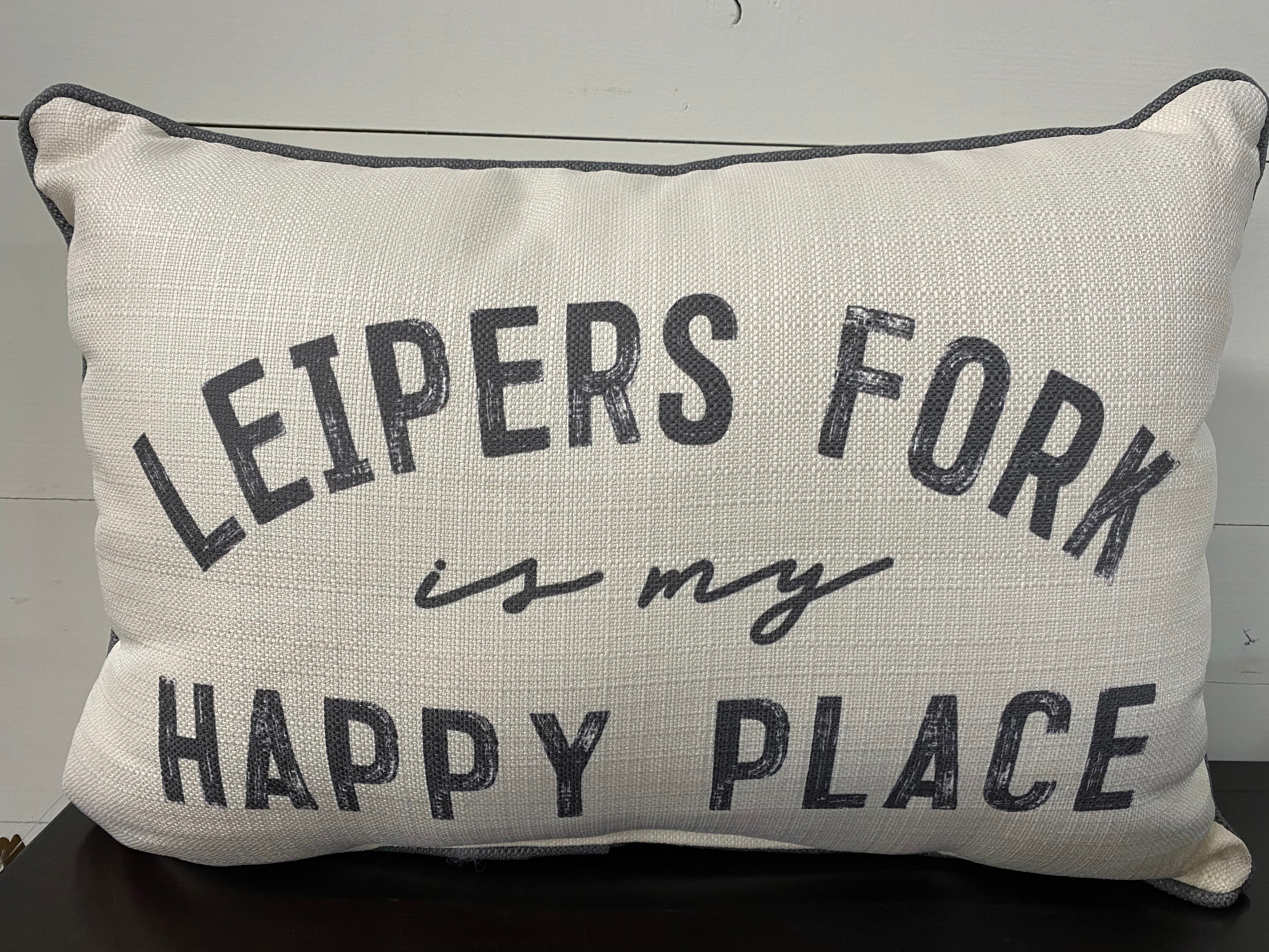 Celebrate local pride with the Leipers Fork Is My Happy Place Pillow in grey with storm piping. Soft and stylish, it adds cozy comfort to your space while sharing a message that feels like home.