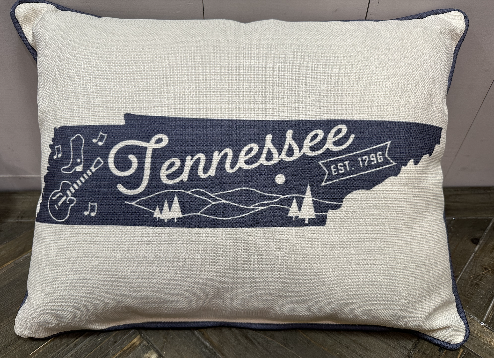 Bring a touch of Tennessee charm to your space with this delightful illustrated pillow. Featuring a beautiful dusty navy design with contrasting trim, it's the perfect way to celebrate your love for the Volunteer State. Whether you're a proud Tennessee native or simply admire its character, this playful pillow adds personality and warmth to any room. Ideal for couches, beds, or cozy reading nooks, it's a conversation starter that feels like home.