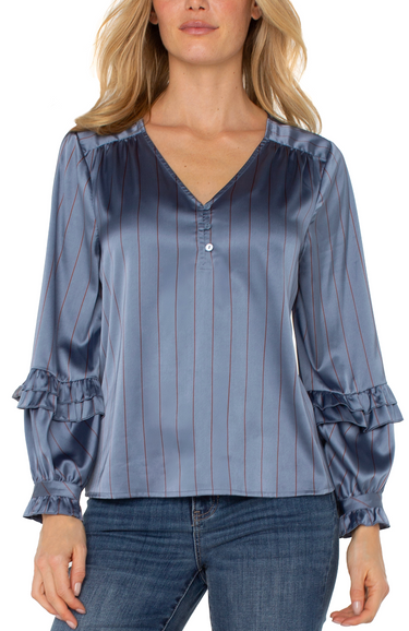 Dusty Blue Ruffle Sleeve Blouse